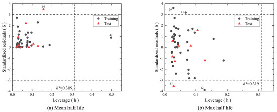 The Williams plot of the mean and maximum half-lives in air by MLR.