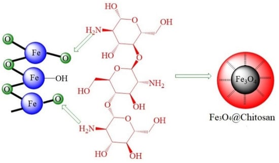 Schematic diagram of Fe3O4 surface coated with chitosan [57].