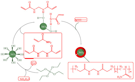 Synthetic schematic illustration of SiO2/P(MBAAm-co-AM) composite NPs [58].