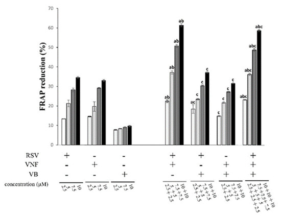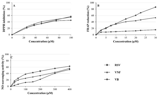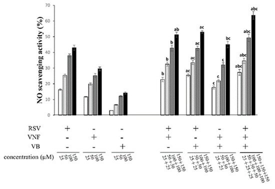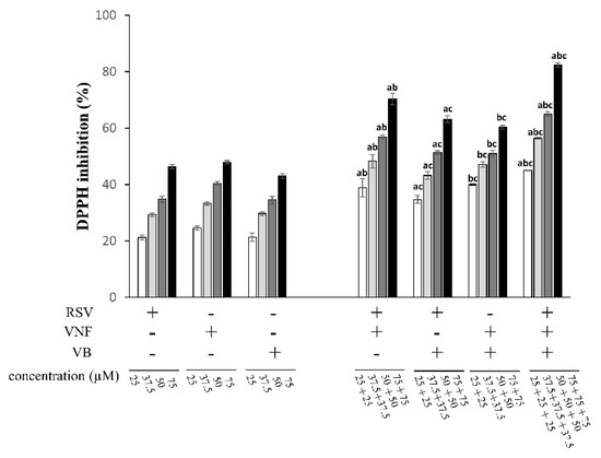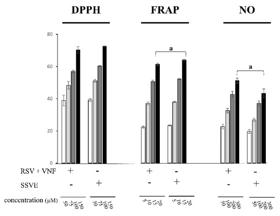 2.4. Comparison of the Antioxidant Activities between the Combination RSV + VNF and the Standardized Stilbene-Enriched Vine Extract