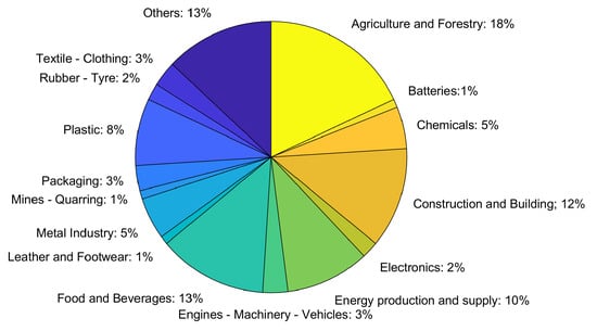 Agriculture and forestry (18%) and food applications (13%) were, between 2014 and 2020, some of the areas of the LIFE projects (the financial instrument for the environment) with the highest adherence toward achieving a circular economy (Figure 3).