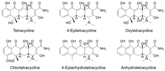 - Bryskier, A. Structure-activity relationships in antibacterial agents. In Antimicrobial Agents: Antibacterials and Antifungals. Tetracyclines; Bryskier, A., Ed.; ASM Press: Washington, DC, USA, 2005; pp. 1371–1377. [Google Scholar]