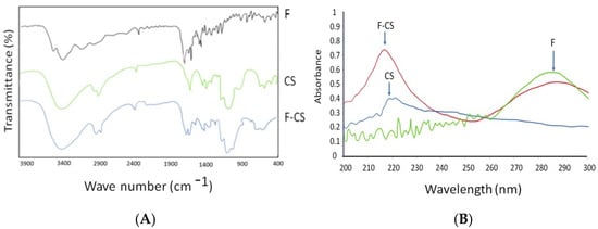 (A) IR spectral of F-CS; (B) UV spectral absorption of F-CS.