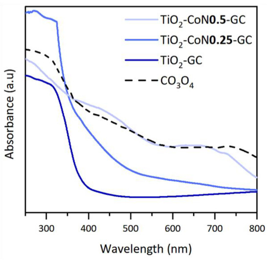 UV-visible spectroscopy data with the absorption spectra of the GC samples and Co3O4.