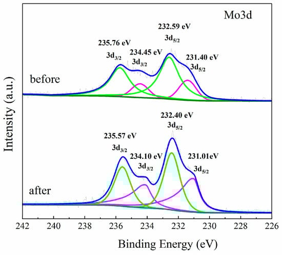 XPS spectra of Mo 3d (before illumination and after illumination).