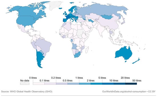 - Our World in Data. Available online: https://ourworldindata.org/grapher/wine-consumption-per-person (accessed on 29 August 2023).