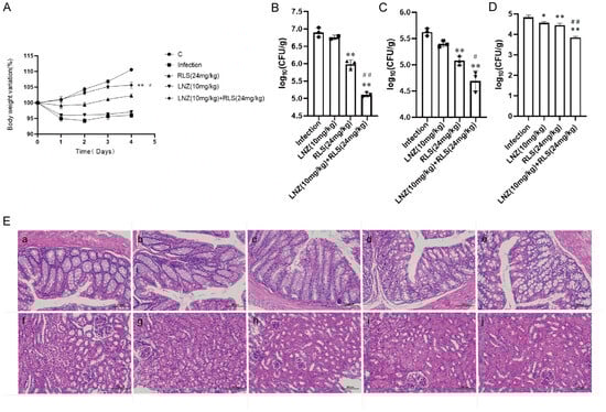 2.3. Rhamnolipid with Linezolid Showed a Synergistic Impact In Vivo Compared to Monotherapy