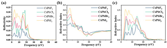 (a) Reflection and (b,c) refraction spectra of CsPbX3 (X = F, Cl, Br, I).