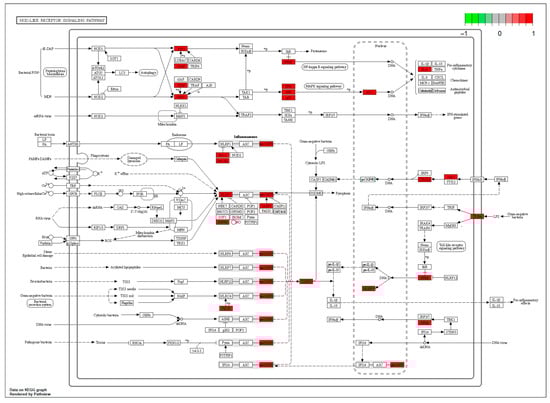 The direct targets of the ethyl acetate extract from decoction of Sargentodoxa cuneata (EAdSc) action on the NOD-like receptor signaling pathway. The targets are marked in red.