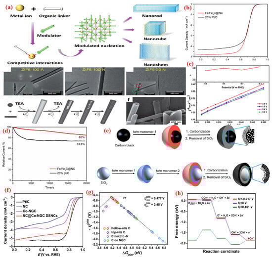 - Zhang, H.; Osgood, H.; Xie, X.; Shao, Y.; Wu, G. Engineering nanostructures of PGM-free oxygen-reduction catalysts using metal-organic frameworks. Nano Energy 2017, 31, 331–350. [Google Scholar] [CrossRef]