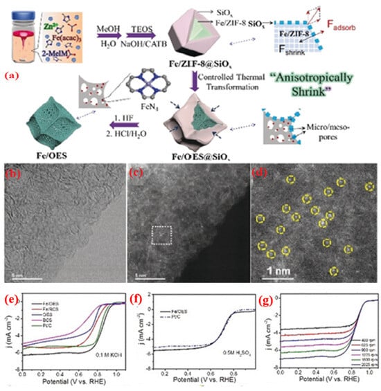- She, W.; Xie, Q.; Huang, Y.; Xie, C.; Zhang, X.; Sun, M.; Wang, F.; Xiao, J. Microstructure Engineering of Fe/Fe3C-Decorated Metal–Nitrogen–Carbon Mesoporous Nanospheres via a Self-Template Method for Enhancing Oxygen Reduction Activity. ACS Appl. Mater. Interfaces 2020, 12, 28065–28074. [Google Scholar] [CrossRef]