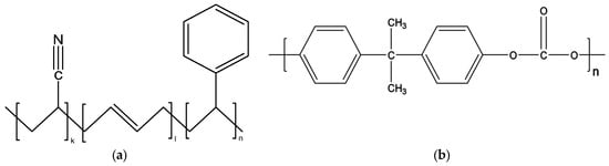 Chemical structures of the investigated polymers (a) Acrylonitrile-butadiene-styrene (ABS), (b) Polycarbonate (PC).