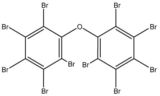 PBDEs are among the most significant environmental pollutants due to their resistance to degradation. These lipophilic molecules accumulate in the fatty tissues of living organisms and cause various pathologies [6]. The primary methods of human PBDE exposure involve ingesting and inhaling dust [8]. PBDEs have been detected in human samples such as blood, placental tissue, and breast milk [9], and their half-life in the human body is estimated to range from 1 to 12 years [10,11]. These chemicals act as endocrine disruptors, having an impact on neurological development in humans [12,13], various male reproductive functions [14], and the incidence of abnormal genital development [15,16].