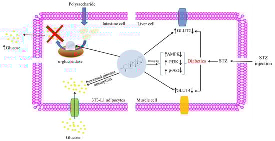Sunil et al. [21] used STZ-induced diabetic Wistar rats to show the antidiabetic mechanism of isolated friedelin from A. tetracantha. Diabetic rats had decreased protein expression of liver PI3K, p-Akt, GLUT2 and AMPK, and skeletal muscle GLUT4. GLUT2, PI3K, AMPK, p-Akt, and GLUT4 protein expressions decreased in diabetic rats. They found that 40 mg/kg friedelin increased PI3K, p-Akt, GLUT2, and AMPK protein expression in STZ-induced diabetic rats [21].