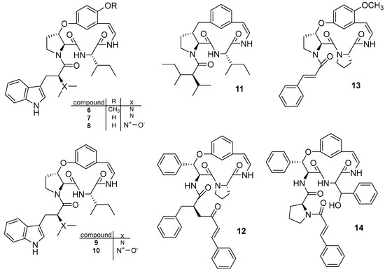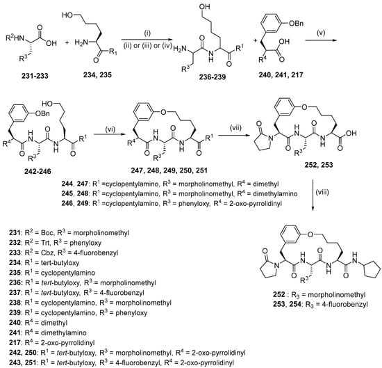 3.1.5. Cyclopeptides Anolgs Prepared by Macrocyclization