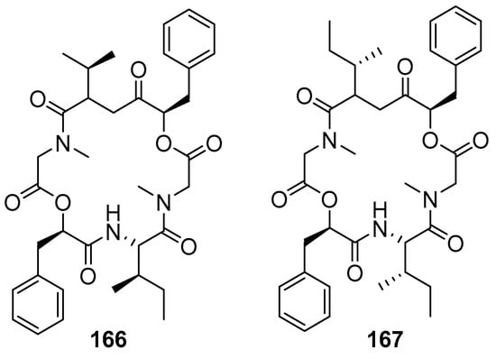 - Jang, J.P.; Nogawa, T.; Futamura, Y.; Shimizu, T.; Hashizume, D.; Takahashi, S.; Jang, J.H.; Ahn, J.S.; Osada, H. Octaminomycins A and B, cyclic octadepsipeptides active against Plasmodium falciparum. J. Nat. Prod. 2017, 80, 134–140. [Google Scholar] [CrossRef]
