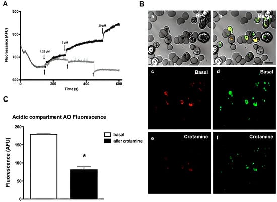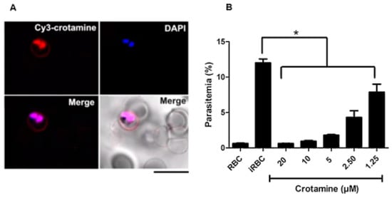 - Maluf, E.; Mas, C.; Oliveira, E.B.; Melo, P.M.; Carmona, A.K.; Gazarini, M.L.; Hayashi, M.A.F. Inhibition of malaria parasite Plasmodium falciparum development by crotamine, a cell penetrating peptide from the snake venom. Peptides 2016, 78, 11–16. [Google Scholar] [CrossRef]