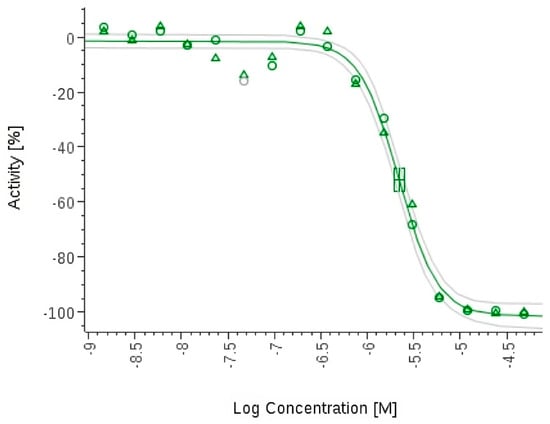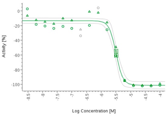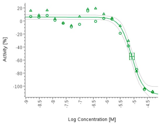 The IC50 values are more promising than the Ang II results, which were demonstrated by evaluating seven concentrations giving 7–65% inhibition (Figure 30). The results imply that intramolecular interactions cause conformational tendencies that are crucial for antiplasmodial activity. When present on the peptide primary sequence, the hydrophobic portion and the residues of Arg, Tyr, Pro, and Phe increased the antiplasmodial activity. Following in vivo model tests of this class of peptides, this type of research aids the development of new chemotherapeutics, which can be explored as antimalarial drugs [30].