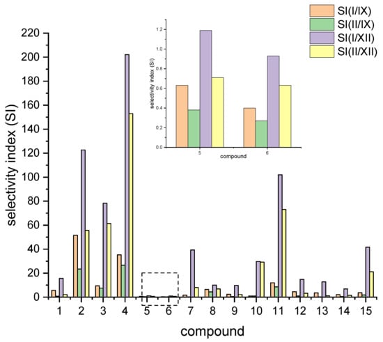 Comparison of selectivity index for compounds 1–15 with respect to the different isoforms.