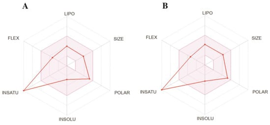 Predicted ADME properties of clinically tested SLC-0111 (A) and compound 3 (B).