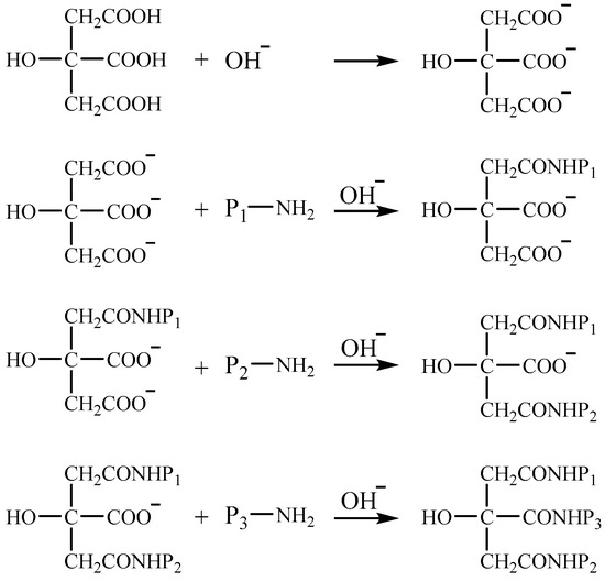 Schematic structure of the cross-linking reaction between citric acid and protein.