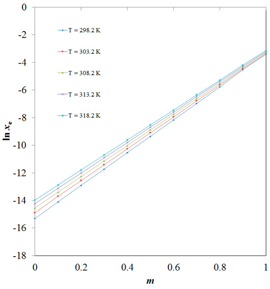 With the help of Equation (2), the xidl of CBZM at 298.2–318.2 K was derived [44]: