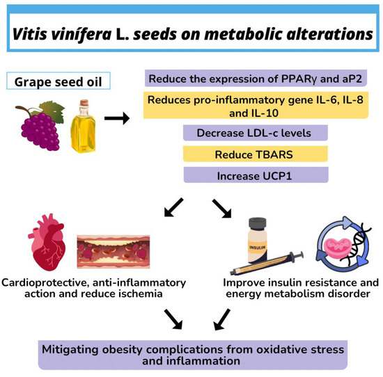 Summary of the effects of Vitis vinifera L seed oil on obesity and metabolic alterations.