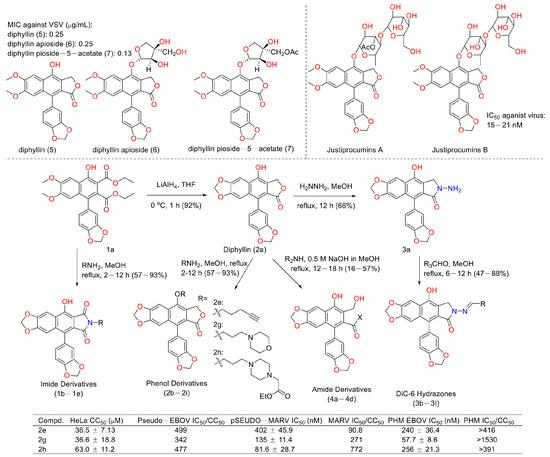 - Asano, J.; Chiba, K.; Tada, M.; Yoshii, T. Antiviral activity of lignans and their glycosides from Justicia procumbens. Phytochemistry 1996, 42, 713–717. [Google Scholar] [CrossRef]