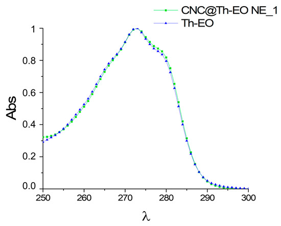 UV spectra of Th-EO before and after encapsulation in CNCs@Th-EO NE_1 formulation.