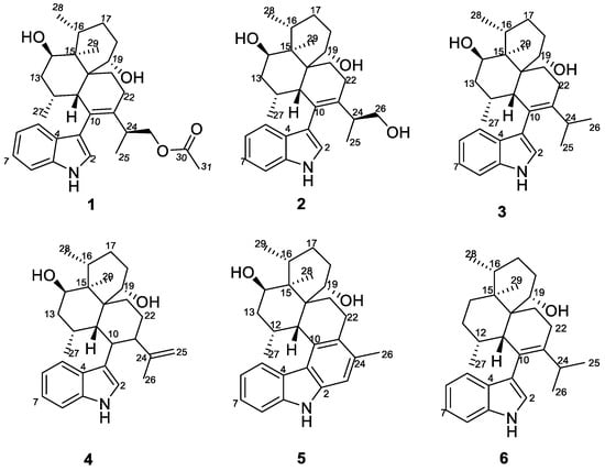 Structures of compounds 1–6.