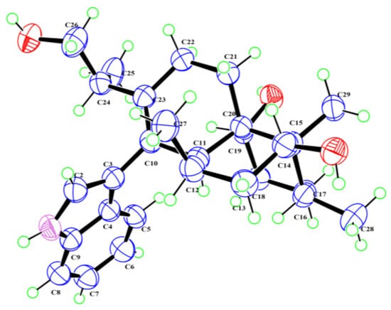 Compound 2: light yellow crystals. The molecular formula is C28H39NO3 (m/z 436.2 [M − H]−) determined using ESIMS. [α + 73.3 (c 0.04, MeOH). The 1H NMR and 13C NMR data (Table 1, Figures S8 and S9) proved that compound 2 was dihydroxyaflavinin [7,14].