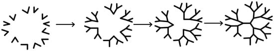 It was not until 1985, however, that the investigations by American researchers Tomalia and Newkome effectively integrated dendrimers into the realm of scientific research. Tomalia [13] successfully synthesized polyamidoamine (PAMAM) with a dendritic structure, branding it as “Startburst dendrimers”, and it is now primed for industrial production. In the same year, Newkome [14] also achieved the synthesis of a dendrimer with a trimethylbenzene ring as its core, branching outward, which he christened “arborols”, as illustrated in Figure 3. Consequently, a profusion of dendritic polymers with diverse materials, structures, and synthetic methods has emerged.