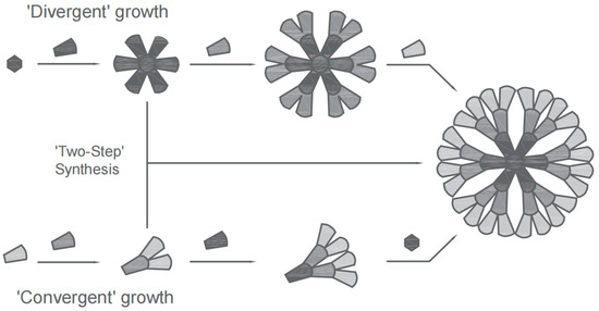 - Hawker, C.J.; Frechet, J.M.J. Control of Surface Functionality in the Synthesis of Dendritic Macromolecules Using the Convergent-Growth Approach. Macromolecules 1990, 23, 4726–4729. [Google Scholar] [CrossRef]