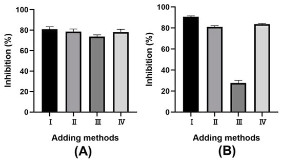 The effect of sample adding methods on the rate of inhibition. (A) α-amylase; (B) α-glucosidase.