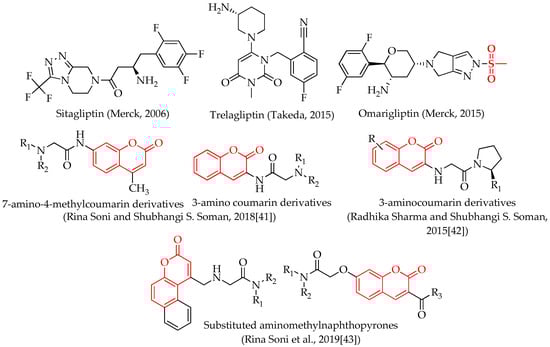 Structures of some approved drugs and coumarin derivatives reported by different researchers as DPP-IV inhibitors.