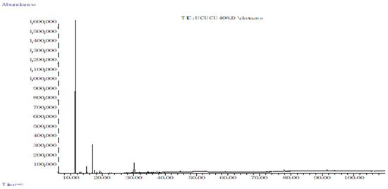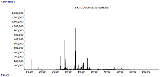 Total ion chromatogram of essential oil from root of Chrysopogon nigritanus.