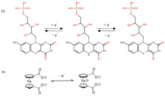(a) Electrochemical transformation of riboflavin−5′−phospahate at pH neutral in aqueous media; (b) ferrocene dicarboxylic.