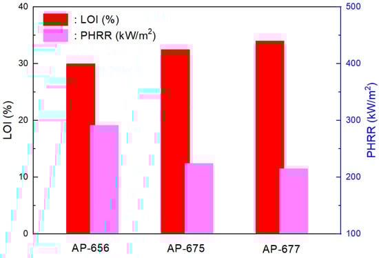 Relationships between LOI and PHRR in RP content formulations. RP content: AP-656 = 0, AP-675 = 3 phr and AP-677 = 5 phr.