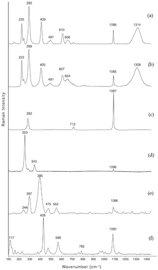 - Buzgar, N.; Buzatu, A.; Sanislav, I.V. The Raman study on certain sulfates. An. Stiint. Ale Univ. Al Cuza 2009, 55, 5–23. [Google Scholar]
