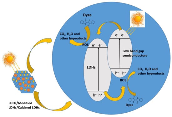 - Bobde, P.; Sharma, A.K.; Panchal, D.; Sharma, A.; Patel, R.K.; Dhodapkar, R.S.; Pal, S. Layered double hydroxides (LDHs)-based photocatalysts for dye degradation: A review. Int. J. Environ. Sci. Technol. 2022, 1–20. [Google Scholar] [CrossRef]