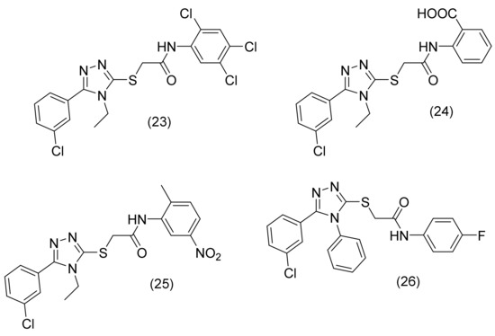 1,2,4-triazole derivatives (compounds 23–26) synthesized by Riaz, N. et al. [21].