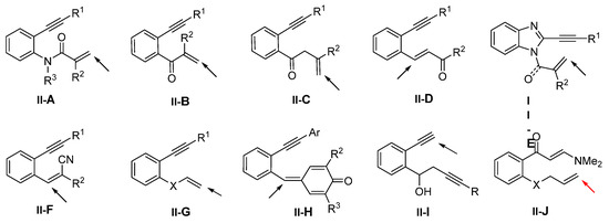 - Jiang, B.; Wu, Y.-N.; Chen, Z.-Z.; Wen, X.; Hao, W.-J.; Wang, S.-L.; Tu, S.-J. Synthesis of sulfonylated anti-indeno [1,2-d]pyridazines via oxidative three-component 1,5-enyne- bicyclization. Tetrahedron Lett. 2016, 57, 4246–4249. [Google Scholar] [CrossRef]