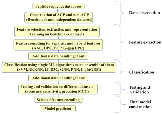 Schematic representation showing different steps of traditional machine learning approach for building a predictor for ACPs.
