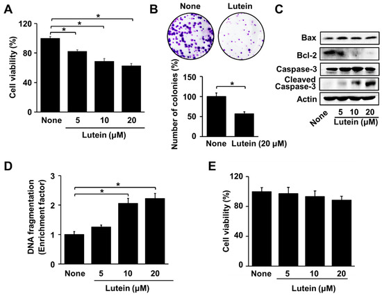 Chicago/Turabian StyleEom, Ju Won, Joo Weon Lim, and Hyeyoung Kim. 2023. "Lutein Induces Reactive Oxygen Species-Mediated Apoptosis in Gastric Cancer AGS Cells via NADPH Oxidase Activation" Molecules 28, no. 3: 1178. https://doi.org/10.3390/molecules28031178