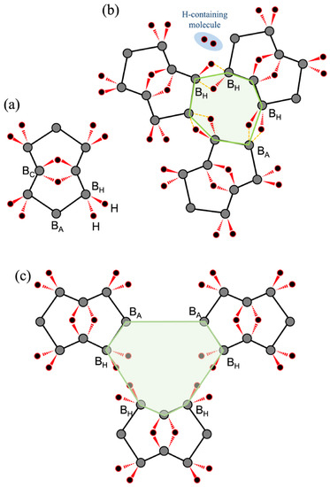 Boron is an electron-deficient element, and it has been found to form unique bonding configurations with multi-center atoms. Various boron-based molecules have been designed and synthesized [2]. Some of these molecules have shown anti-Van’t Hoff/Le Bel features [3,4,5,6]. The predicted existence of a 2D or planar boron material, borophene, has triggered vigorous explorations of its molecules or atomic sheets [7]. Researchers have reported growths of various borophene layers on metal substrates [8,9,10]. Theoretical and experimental searches for 2D boron have been extended to seeking low-dimensional materials composed of boron and other elements [7]. An example is the recent synthesis of sheets of hydrogen boride (HB) or borophane [11,12,13], which show intriguing functions such as hydrogen storage [14]. Boron and hydrogen atoms create a three-center two-electron (3c-2e) bond with unique chemical characteristics that allow us to design new 2D HB structures [15,16,17].