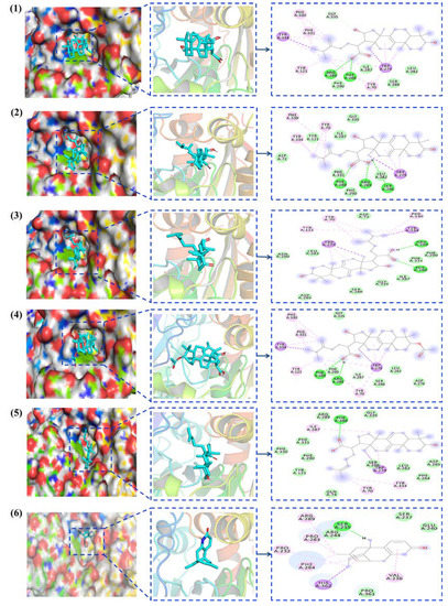 4.6. Molecular Docking Simulation Verification of Active Compounds and AChE