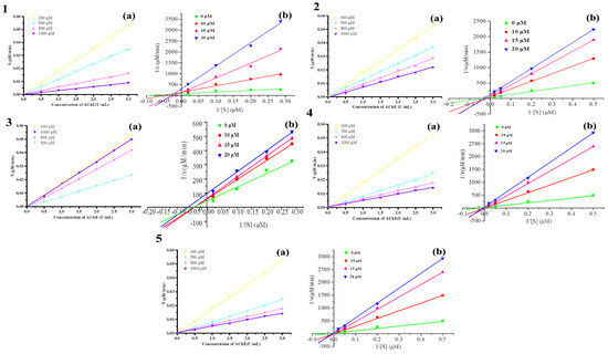 2.5. Study on Enzymatic Reaction Kinetics of the Inhibition of AChE by Active Compounds