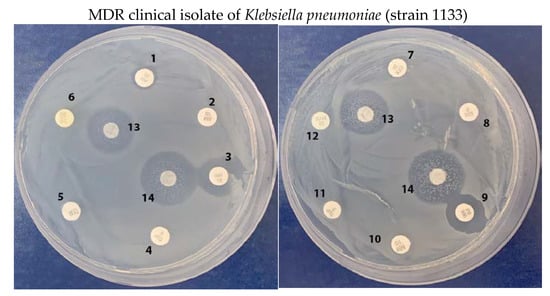 4.4. The Agar Diffusion Method to Analyze Antimicrobial Activity of Tested Compounds against Klebsiella pneumoniae