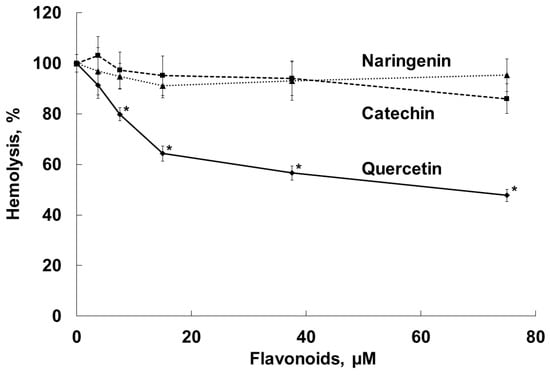 The antihemolytic activity of quercetin was studied using erythrocytes preincubated with polyphenol and subsequently washed with PBS (Figure 5).