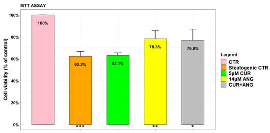 2.1. Andrographolide–Curcumin Association Prevents Cytotoxicity in Steatosis Hepatocyte Model